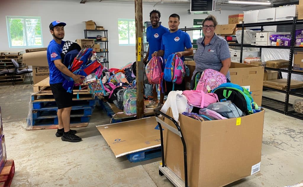 Volunteers filled 1,025 backpacks with donations from local businesses, Meijer and Gun Lake Casino, and Pro Lowe Movers delivered them.