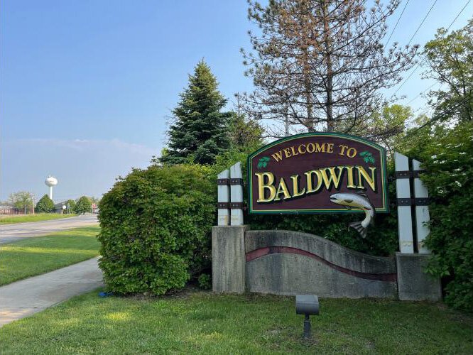 Baldwin is nestled in the middle of Manistee National Forest, a middle point between Grand Rapids and Traverse City at the intersection of US-10 and M-37. A small river snakes through the woods within walking distance of shops on the town’s main drag.