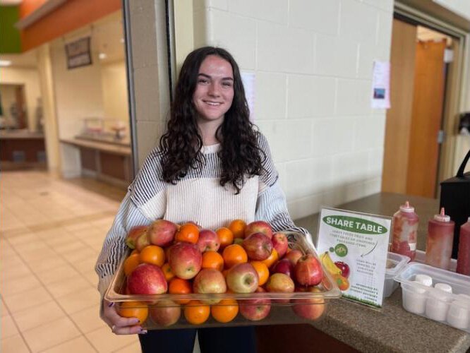 Noticing her fellow students were tossing away fresh fruit, senior Lexi Gross came up with an alternative. Instead of going to the garbage, the fruit is collected and donated to a Southwest Michigan food pantry.