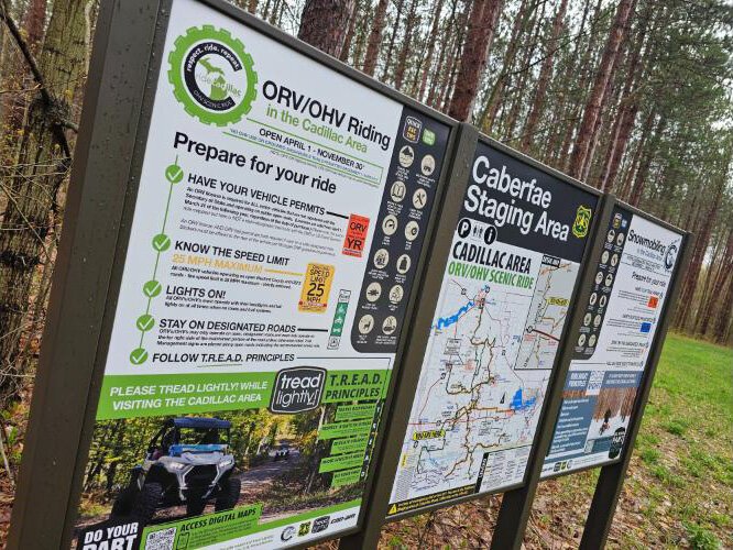 What is the Cadillac Area ORV Initiative: The aim of the Cadillac Area ORV Initiative is to transform the region into an ORV destination. The project included a comprehensive mapping of 100-plus miles into a recommended “scenic ride” on open Wexford County and the U.S. Forest Service roads, while also including a dozen points of interests like restaurants and scenic views. The creation of staging areas with parking — Caberfae and Cadillac West Trailheads — were part of the initiative. Other components include installing kiosks at key intersections and eight business kiosks with maps, safety education and responsible recreation messages.