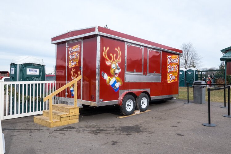 There are two gift shops, animals in a barn for visitors to feed, a cafe with donuts, cider and hot chocolate on-site, a patio and a new food truck. There are a dozen photo opportunities throughout the farm, along with a holiday-designed playground, kids train rides, and entertainment.