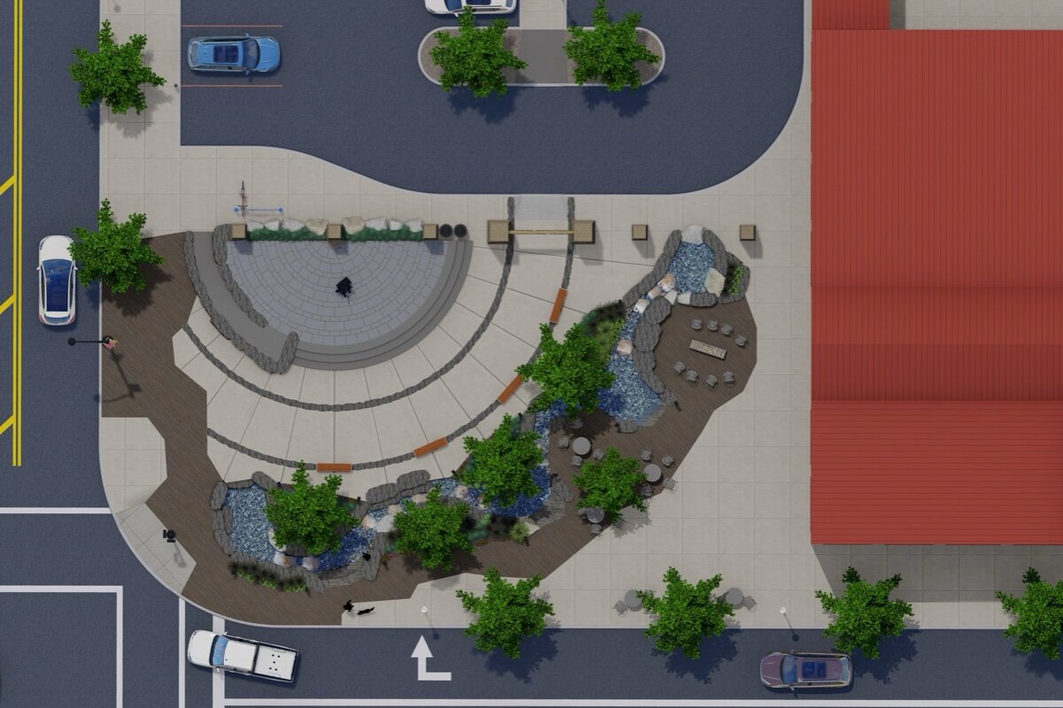 What’s planned: The City of Alpena, its Downtown Development Authority, and the Target Alpena Economic Development Corporation have partnered on the $1,185,550 revitalization project, working with Petoskey’s Drost Landscaping on the design. Plans call for removing the fountain, steps, all existing concrete elements, and just about everything else to make way for a new interactive water feature, public events stage, concrete ADA-compliant surfaces, new trees and landscaping with green infrastructure features, an ADA-compliant family restroom facility, and more.