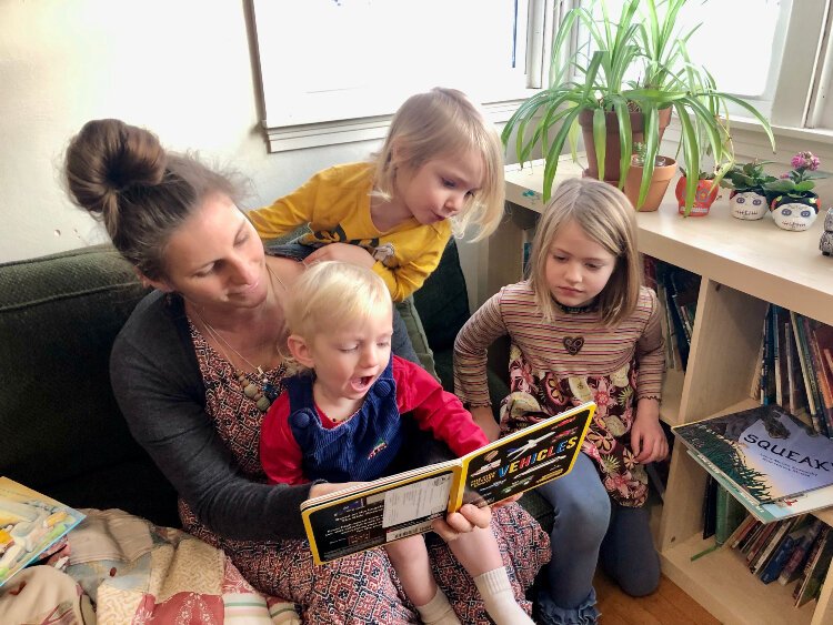 “Usually we read in the afternoon, but sometimes we start our day that way,” Pawloski says. “Occasionally I read to all four kids together. But it’s easier — and kind of nicer for me — to read to them individually. Each child feels special when it’s their turn to read with Mom. That way we can also choose a book that’s right at their level.”