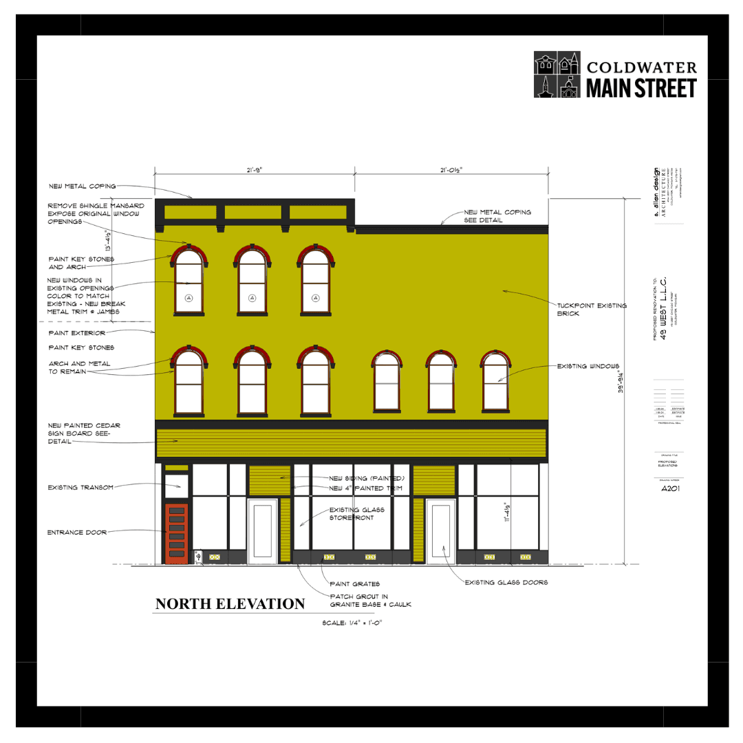 Why it’s important: The Façade Restoration Initiative was developed as part of Coldwater Main Street’s downtown transformation strategy. The intent is to reinforce the community’s unique architecture and sense of place by revitalizing high-impact and highly visible historic buildings downtown.