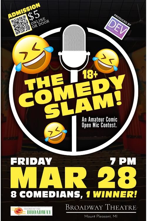 The Broadway Theatre has been a cultural staple in downtown Mt. Pleasant for over a century, offering live performances, films, and community-driven events. Led by the Friends of the Broadway nonprofit, efforts to restore and enhance the historic venue are underway, including accessibility improvements, stage renovations, and a newly launched "Comedy Slam!" series.