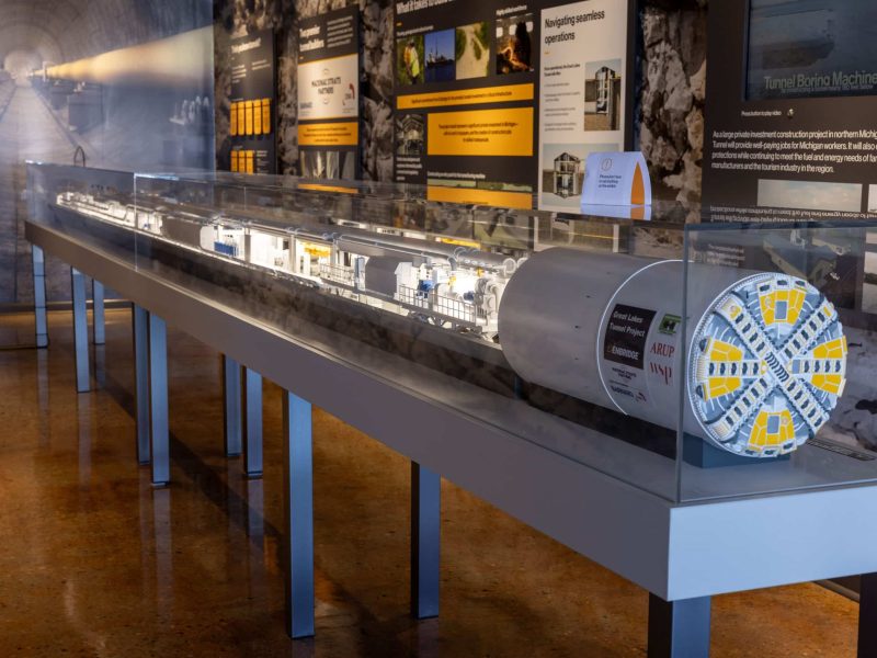 To quell concerns and share information about the tunnel, Enbridge opened an informational center in downtown St. Ignace in 2021. The center shares the history of Line 5, the geography of the Straits and plans for the project. In addition, there is a miniature display of the machine that will bore through the Earth to build the tunnel.