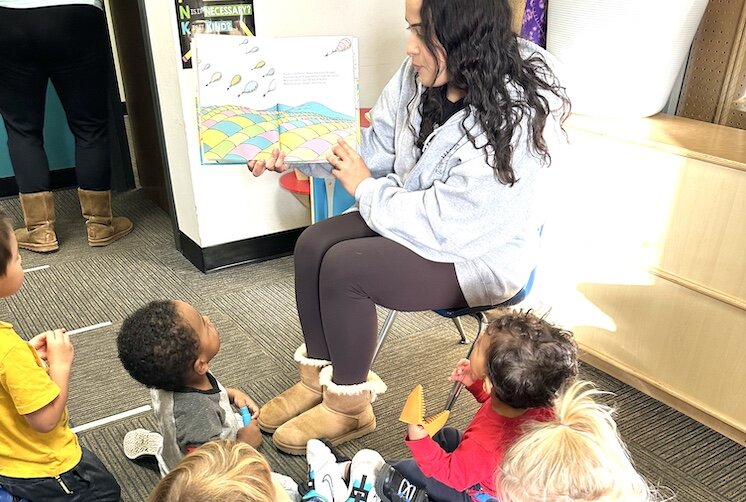 Ms. Mariah reads to children attending Jumpstart.