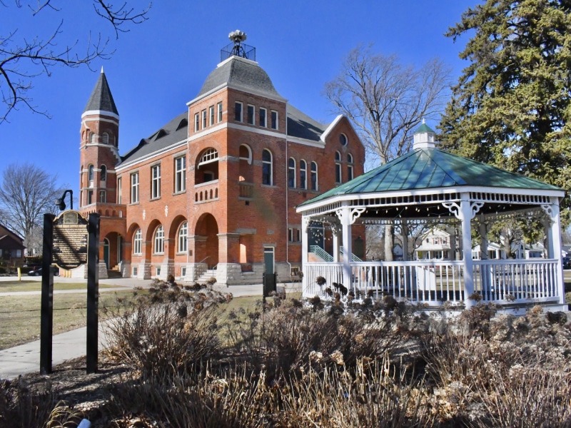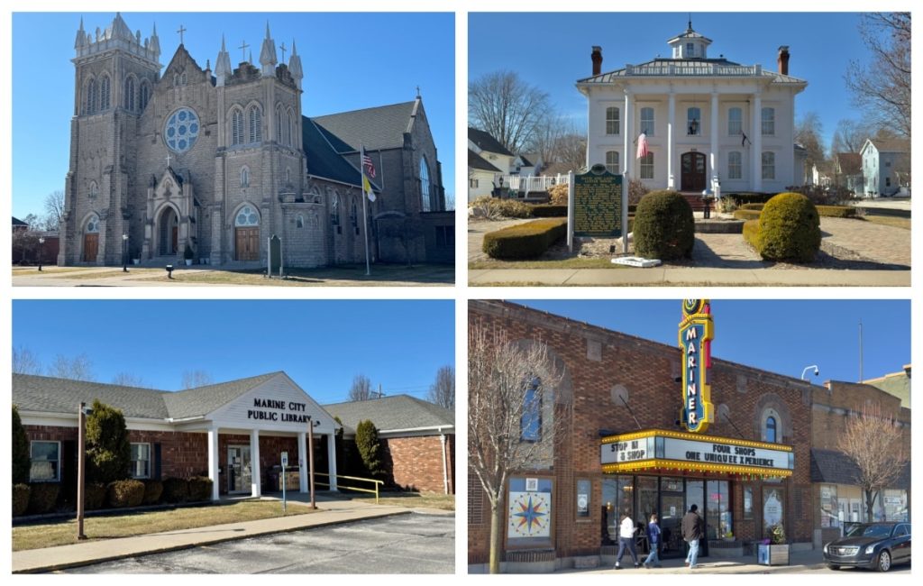 Some Marine City destinations: Holy Cross Catholic Church, Lester House, Marine City Public Library, and Mariner Theatre.