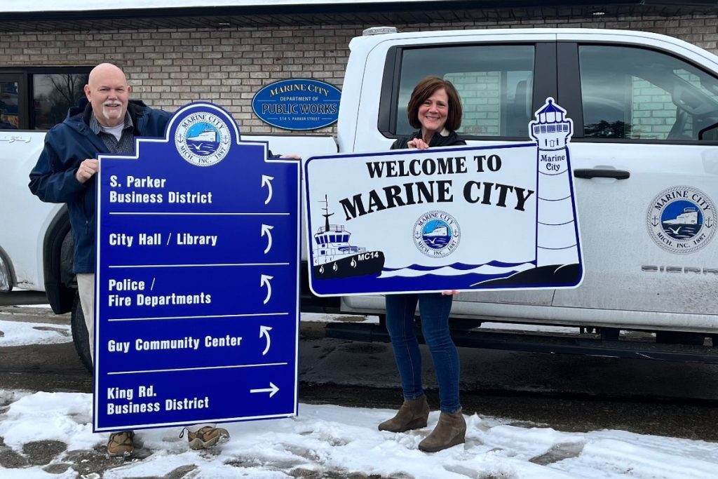 When Marine City Chamber of Commerce director Laura Merchant first came to live here 12 years ago, she found it very difficult to find her way around. That’s why she’s excited about new wayfinding signage that will connect Marine City’s four distinct business districts and make it easier for residents and tourists to find the marina, beaches, parks, and city facilities.