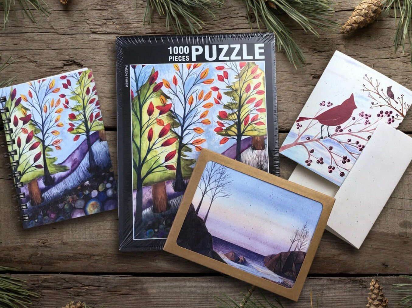 The environment is more than a source for Millner. It’s also a cause. For every item purchased from her artisan goods collection, which includes handmade prints, cards, sketchbooks and puzzles, a tree is donated to a national forest. So far, 965 trees have been planted and more than $52,000 has been given to local nonprofits through the business’s jewelry fundraiser program.