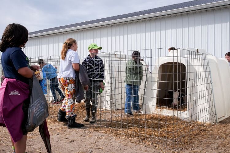 Pasch Dairy Farms taught students fun cow facts—such as how many gallons of water cows drink each day.
