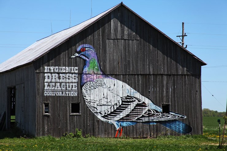 The project’s first modified barn was completed in 2013. Murals — variations of cultural icons “Walden” and “American Gothic” — are painted on either end of the barn. They were created by the Hygienic Dress League, a husband-and-wife team, Steve and Dorota Coy, who are from Detroit.
