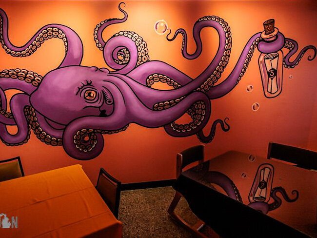 On Strega Nonna’s door is a small handwritten note that recommends reservations. A vibrant mural greets visitors when they enter. Local artist and children’s book illustrator Diana Magnus created the mural.